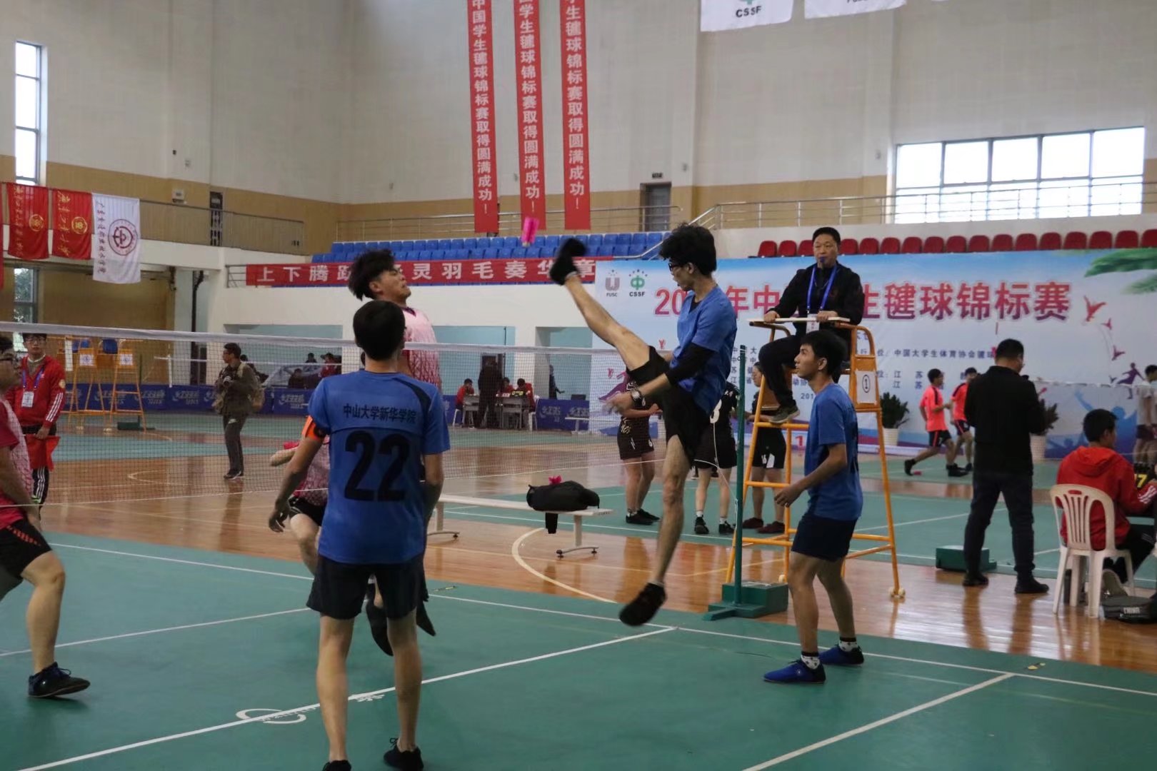 赛场上,中山大学新华学院的校旗高高飘扬,男子单人赛赛场上观众为我校健儿加油助威的声音此起彼伏。此次比赛,我校毽球队队员表现出来的顽强拼搏、积极进取的优良作风及精湛的球技给各参赛队留下深刻印象,这为提高中山大学新华学院在全国的社会影响力起到积极作用。