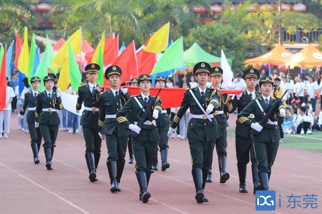庄严的国旗队和校旗队踏着整齐有劲的步伐从主席台前走过,他们带着满腔的热情与活力,气宇轩昂,精神抖擞。鲜艳的五星红旗和中山大学新华学院校旗迎风飘扬,飘荡在祖国的艳阳蓝天下,成为了校园最亮丽的风景线。
