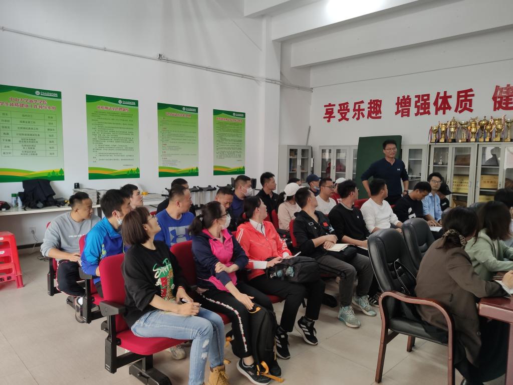 于克巍副主任在竞赛、场地、群体体育等模块作工作安排,于克巍副主任讲到场地要利用好、维护好,训练计划要制定明确、训练有素,群体体育活动要审批好、精准落实、总结与完善。
