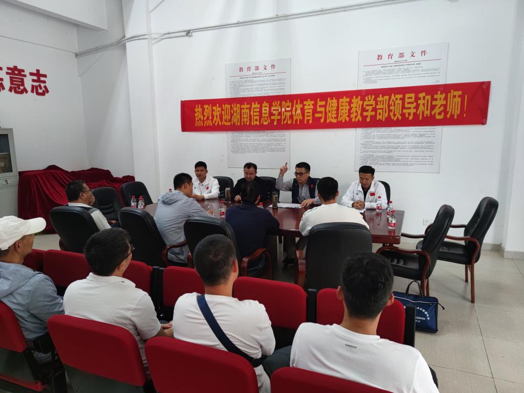 12月9日上午,湖南信息学院体育与健康教学部周次保主任和老师一行到我系作教学、科研、合格评估等工作交流,体育系主任倪依克教授、副主任陈昌教授、副主任于克巍副教授、副书记丁建敏等热情接待了湖南信息学院体育与健康教学部领导和老师。