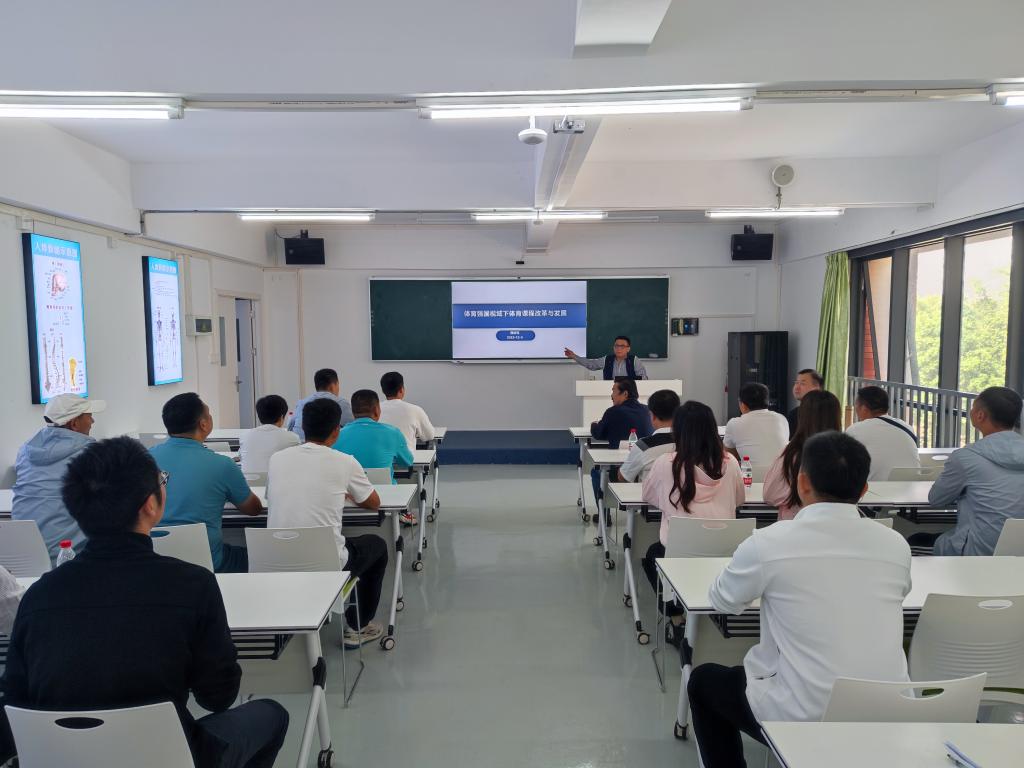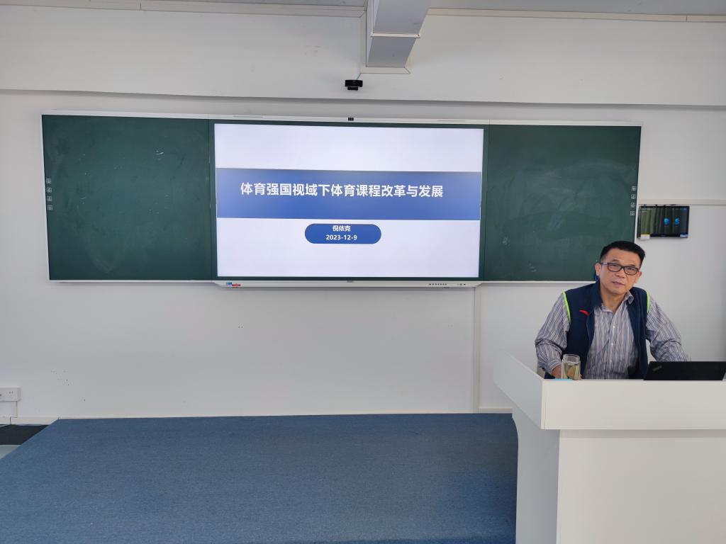 其次,倪依克主任在副馆二楼体育科学实验室为湖南信息学院教师作题为:“体育强国视域下体育课程改革与发展”的科研讲座。