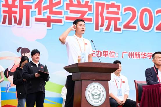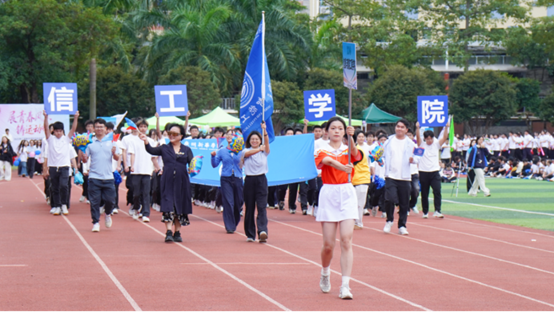 开幕式上,伴随着激昂的旋律,国旗队、校旗队、彩旗队及各院系代表队依次入场。他们步伐整齐、精神昂扬,彰显了广州新华学子的蓬勃朝气。随后举行的升旗仪式上,全体师生肃立行注目礼,齐唱国歌,抒发对祖国的深切热爱与崇高敬意。