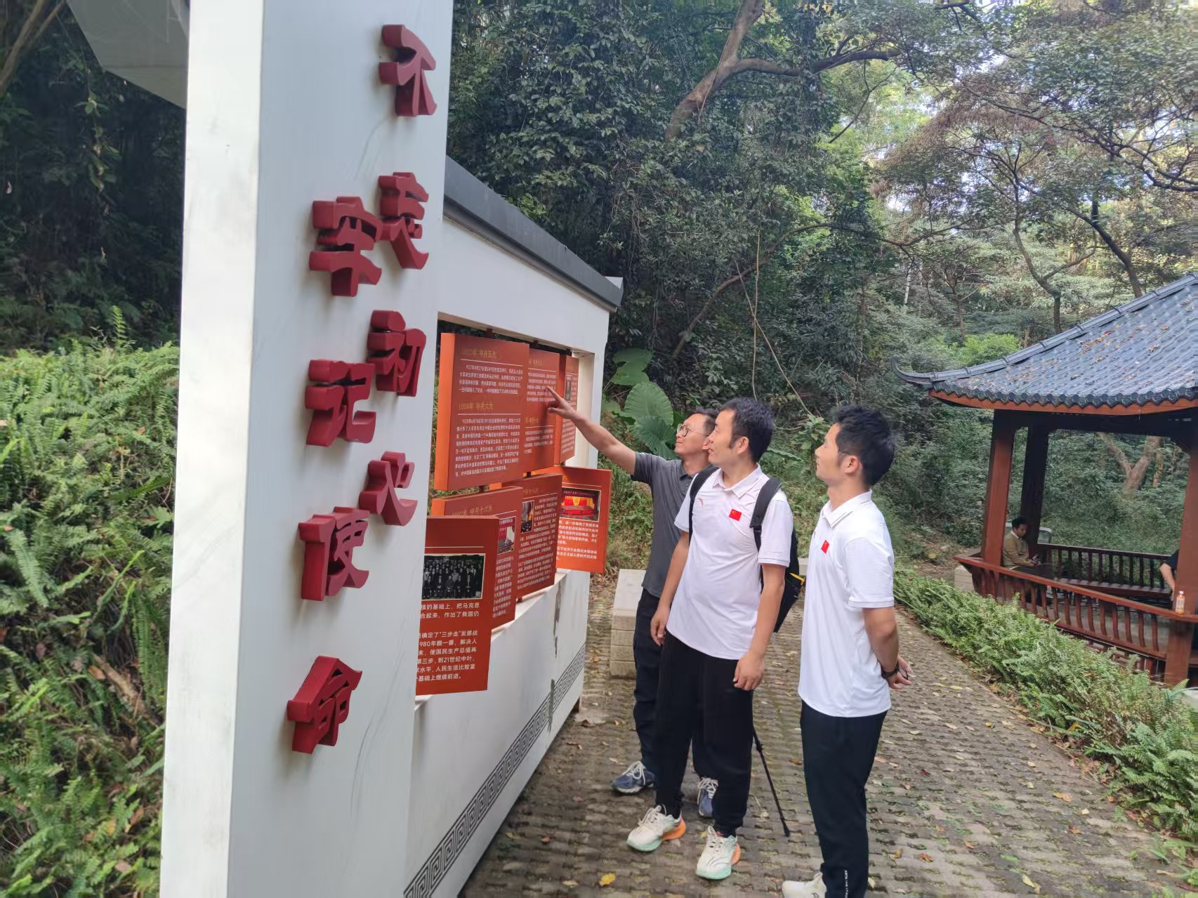 1220日下午,油麻山红色路线学习活动正式启动。沿着革命先辈曾经走过的足迹,全体人员徒步穿行于山林之间,聆听讲解员讲述油麻山地区的革命历史。从艰苦卓绝的游击战争故事到感人至深的军民鱼水情,一个个鲜活的历史场景、一段段可歌可泣的英雄事迹,让每一位参与者都深受触动。大家不时驻足凝视革命遗迹,交流感悟体会,在沉浸式学习中深切感悟革命先辈坚定的理想信念和无畏的牺牲精神,进一步筑牢了信仰之基、补足了精神之钙。