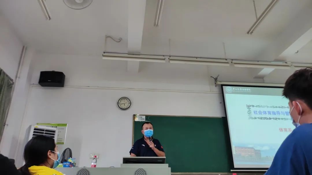 讲话中讲到新生要了解自己的专业,认识体育中的各大专业,再进行了对社会体育指导与管理的介绍,介绍了体育系的社体专业的基本情况,社体在地理位置的发展,专业的可行性,发展的战略,就业前景和方向,和当前专业就业的状况;培养的目标,培养德智体美劳的全面发展,具有实践能力和创新精神的多合型人才;希望新生努力学习具备相关的理论知识和技能成为体育人才寄予厚望。
