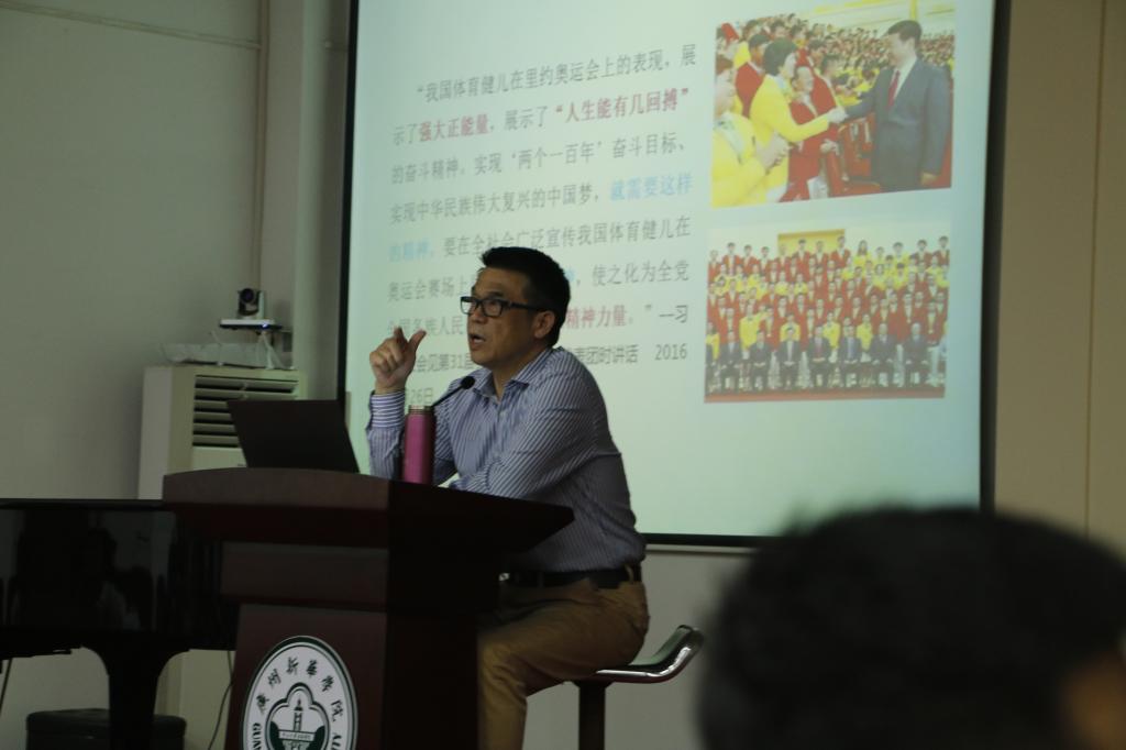 思政第一课主题为“弘扬中华体育精神,展现新华学子风采”,倪依克主任从中华体育精神内涵、中华体育精神的社会功能、中华体育精神和民族文化自信、弘扬中华体育精神,展现新华学子风采四个方面进行授课。倪主任讲到:我国体育健儿在国际舞台上要以最佳的竞技状态和良好的精神风貌,为祖国争光,为民族争气,为奥运增辉,为人生添彩,不辜负习近平总书记对体育的重视与推动,不辜负祖国人民对体育健儿的鼓励和期待。无私奉献的优秀品质表现为体育人在平凡的工作岗位上忘我工作、不计回报,因热爱而坚守,为了国家荣誉甘愿牺牲个人利益。