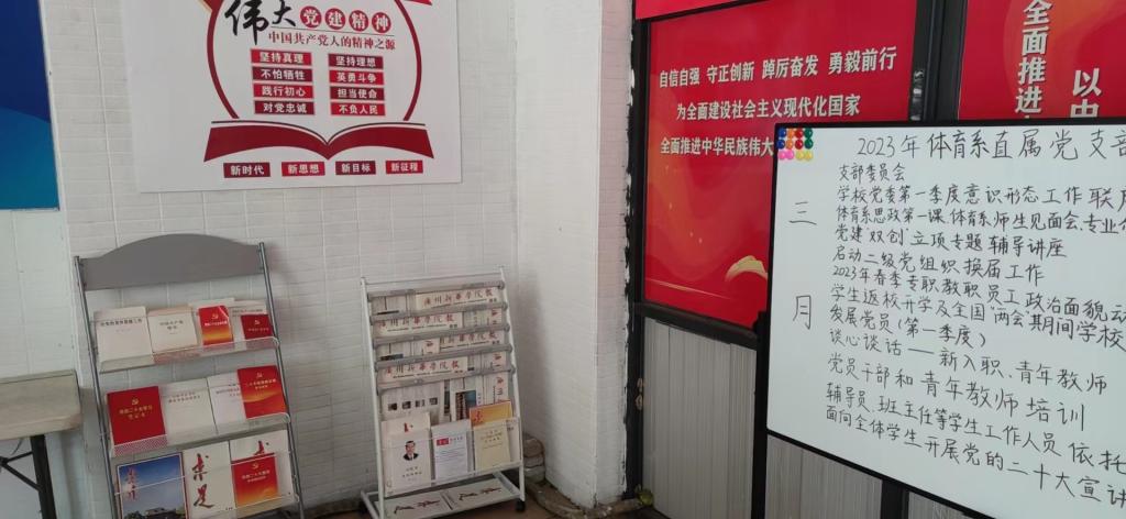 会议第一议题由丁建敏副书记领学党的二十大精神。体育系直属党支部坚持学习武装头脑,模范先锋引领,先后建立党建活动室、阅览学习设施,将党员同志的学习放在第一位,将学习条件安排在公共空间最便利的位置,为大家提供了优质的学习阅览空间。