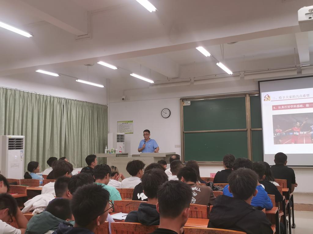 倪依克教授在讲课开始时对体育系2023级给出了 :“青年勇追梦,奋斗向未来”的寄语。并借习近平总书记的话“青少年是祖国的未来、民族的希望”,向同学们表达了新青年的重要性。