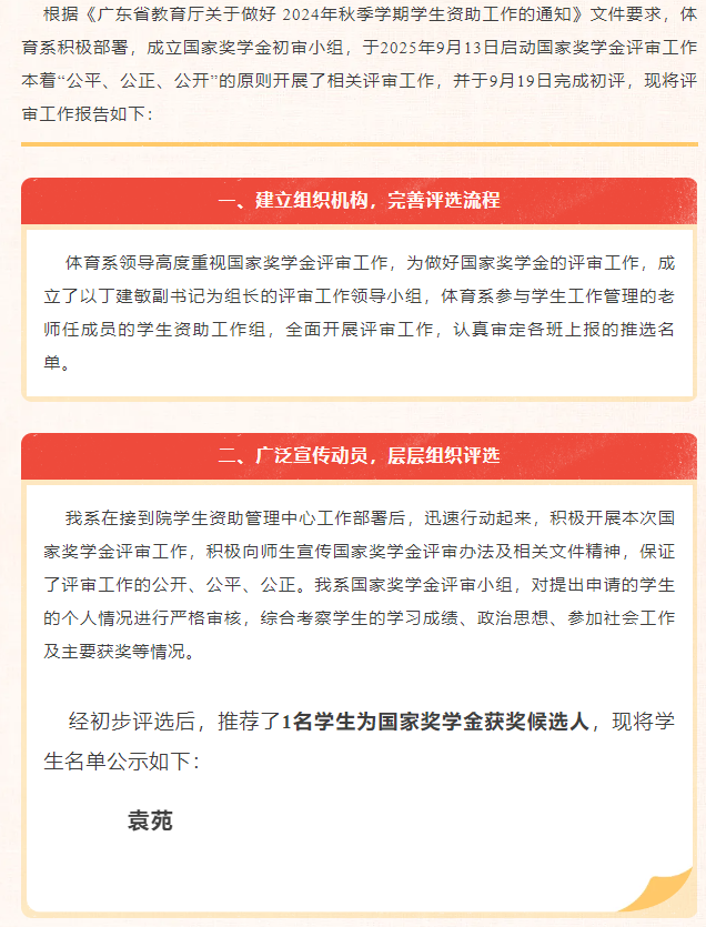 体育系国家奖学金推荐名单公示