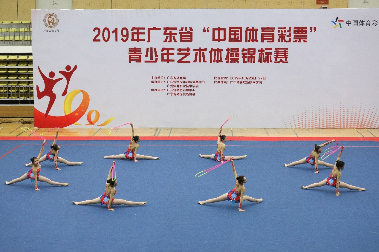 2019年10月26-27日,由广东省体育局主办,广东省青少年训练竞赛中心、广东省体操技巧协会承办的2019年广东省青少年艺术体操锦标赛于广州体育职业技术学院体育馆举行。我校艺术体操队在胡美老师的率领下,共有13名队员参加了比赛。26日,运动员江美玲在单人绳项目的个人比赛中,以第九名的佳绩荣获艺术体操项目的国家二级运动员资格。27日,其余12名运动员在集体徒手及集体绳项目的普及推广大学组的比赛中,斩获冠军奖杯,勇夺四冠——七级徒手一等奖、八级徒手一等奖、七级绳一等奖、八级绳一等奖。