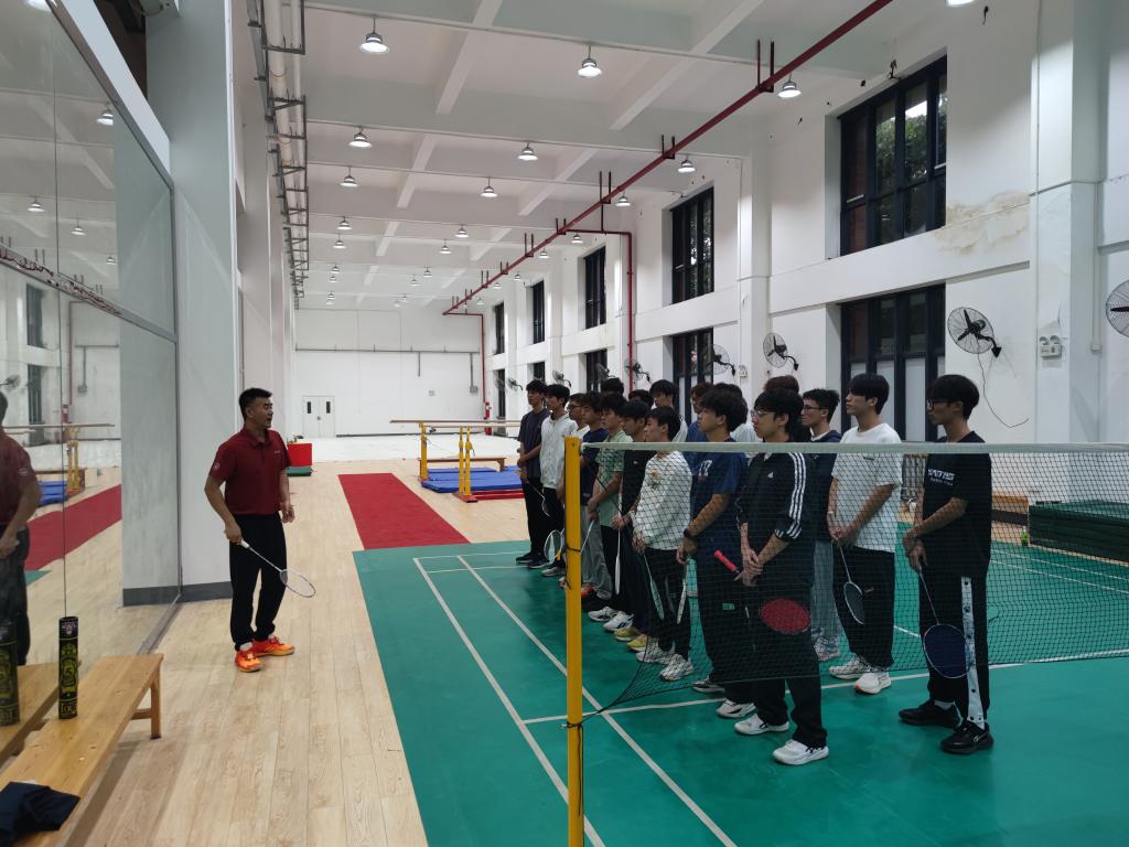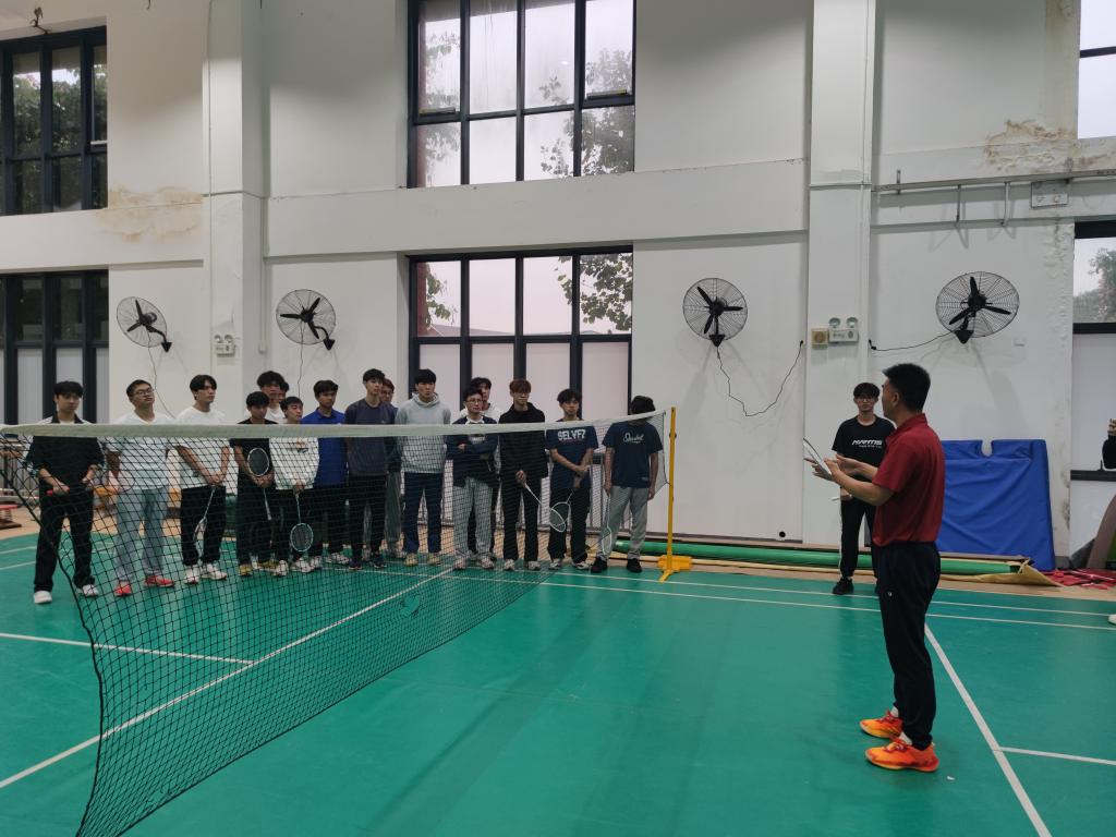 武东海还与同学们交流了基本的握拍,发球,击高远球等技术的关键部分,从技术掌握的技巧方面引入训练的重要性,让学生充分理解技术特点并在训练中掌握正确的练习方法。武东海教授还现场指导学生实战,还指出了一些不足之处和改进方法。
